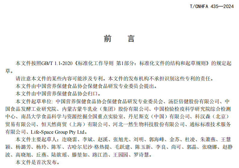本次发布的《益生菌剂胃液耐受性检验方法》团体标准由肠道健康标准化研究联盟发起,中国营养保健食品协会保健食品研发专业委员会、汤臣倍健股份有限公司、中国食品发酵工业研究院、内蒙古蒙牛乳业(集团)股份有限公司、中国检验检疫科学研究院综合检测中心、南昌大学食品科学与资源挖掘全国重点实验室、丹尼斯克(中国)有限公司、科汉森(北京)贸易有限公司、恒天然商贸(上海)有限公司、河北oety欧亿体育生物科技股份有限公司、通标标准技术服务有限公司、Life-Space Group Pty Ltd等权威机构与企业共同完成,标准发布之后,工作组将继续推动本标准在菌株筛选和产品质量评价中的使用。